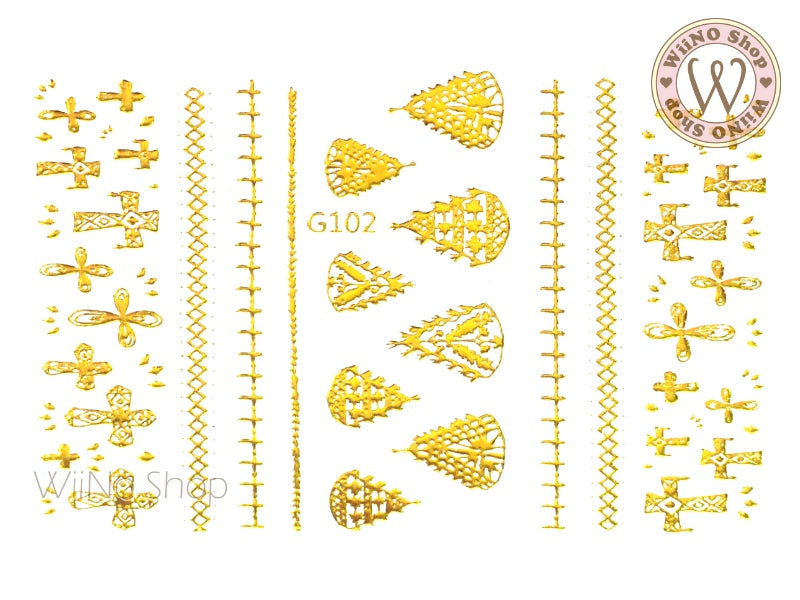 Gold Quatrefoil Pattern Adhesive Nail Art Sticker - 1 pc (G-281)