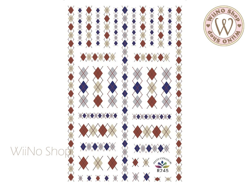 Argyle Pattern Adhesive Nail Art Sticker - 1 pc (R245)