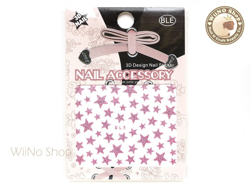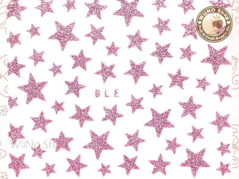 Glitter Star Pink Adhesive Nail Sticker Nail Art - 1 pc (BLE-P)