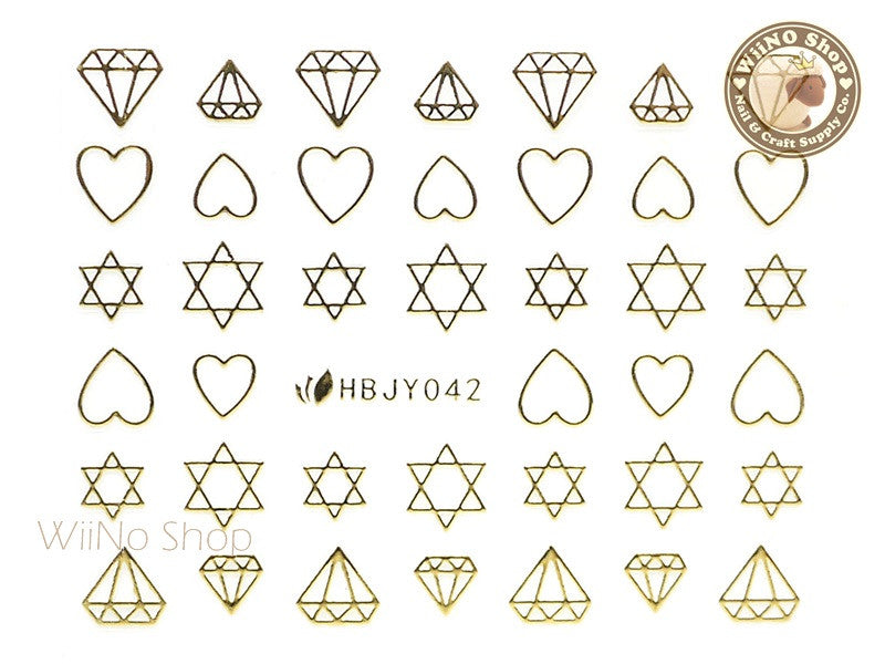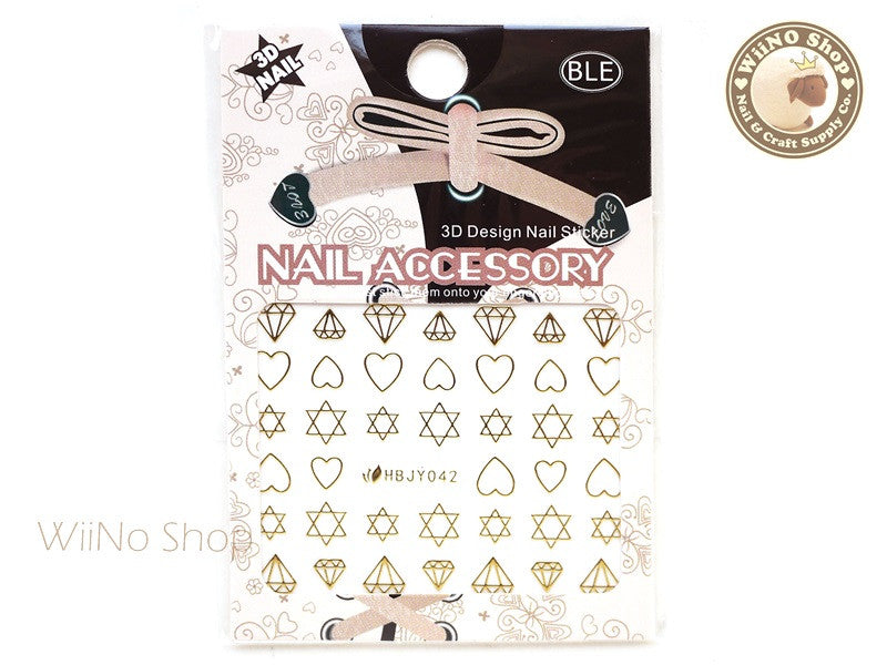 HBJY042 Gold Diamond Heart Star Nail Sticker Nail Art - 1 pc