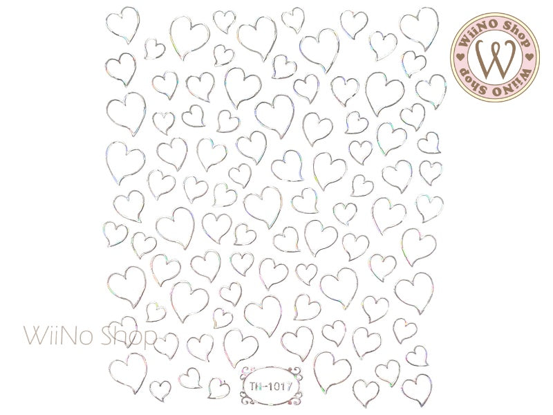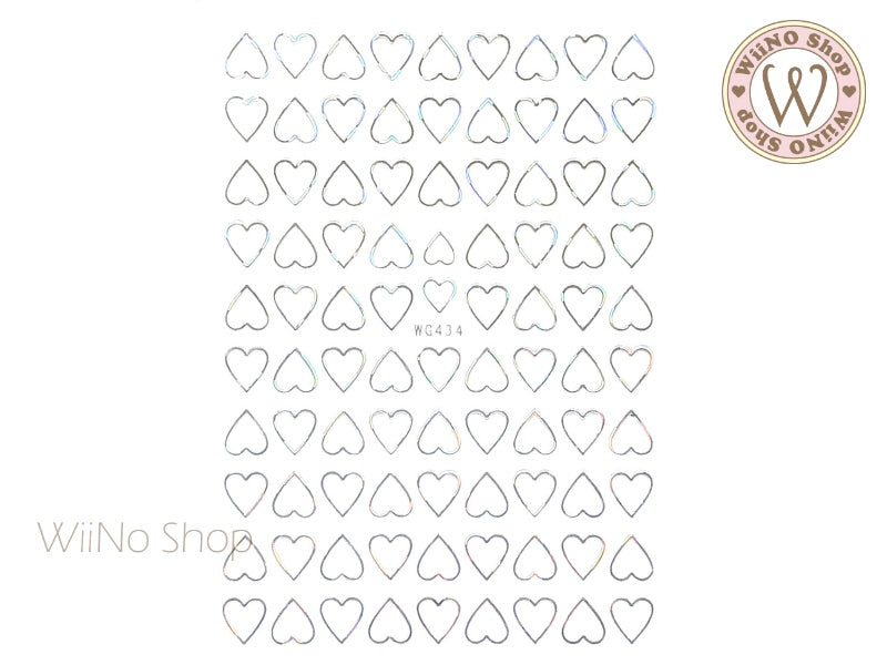 Silver Holographic Heart Frame Adhesive Nail Art Sticker - 1 pc (WG434SH)