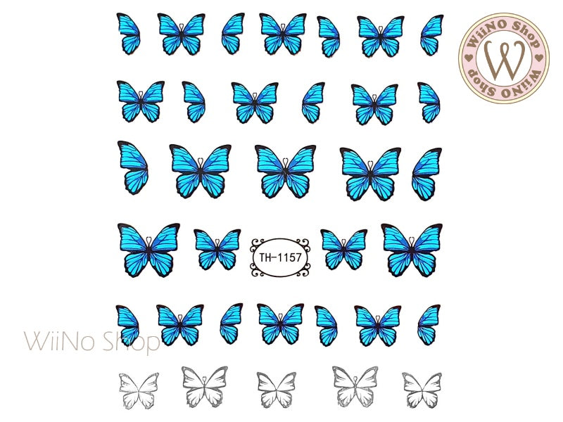 Blue Butterfly Adhesive Nail Art Sticker - 1 pc (TH-1157)