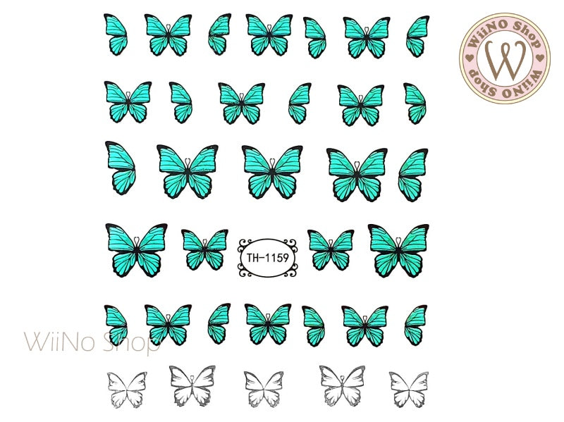 Turquoise Butterfly Adhesive Nail Art Sticker - 1 pc (TH-1159)