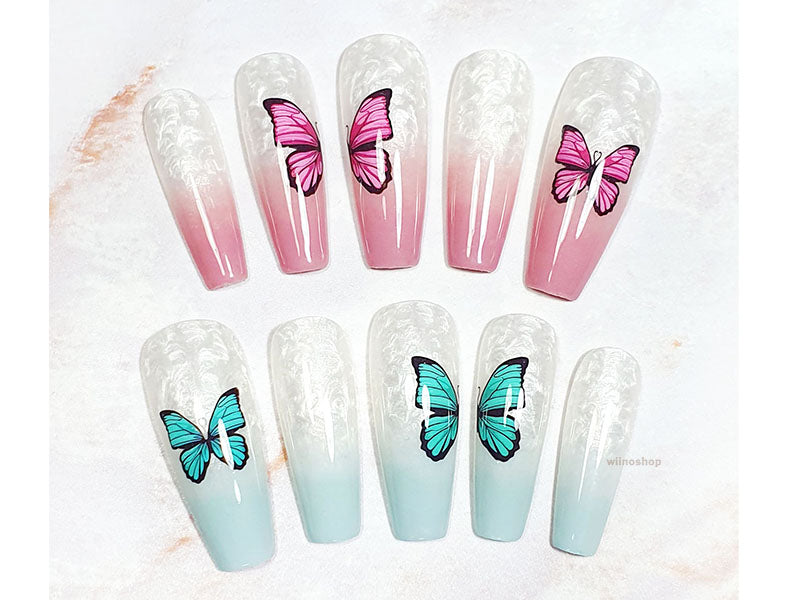 Pink Butterfly Adhesive Nail Art Sticker - 1 pc (TH-1160)