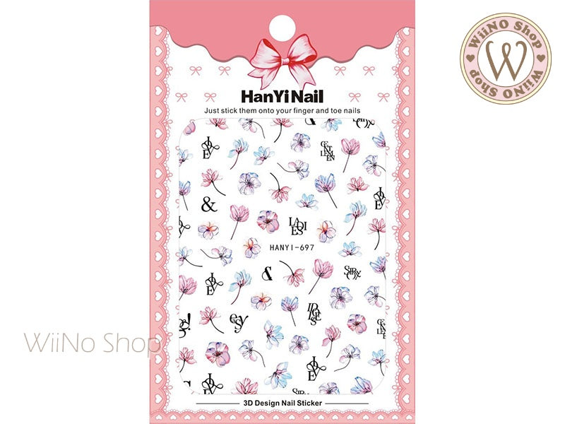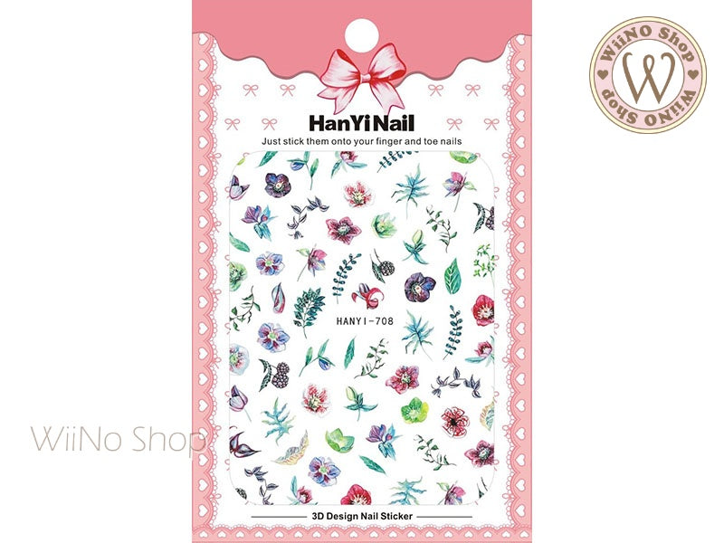 Watercolor Pastel Flower Adhesive Nail Art Sticker - 1 pc (HY-697)