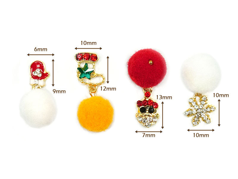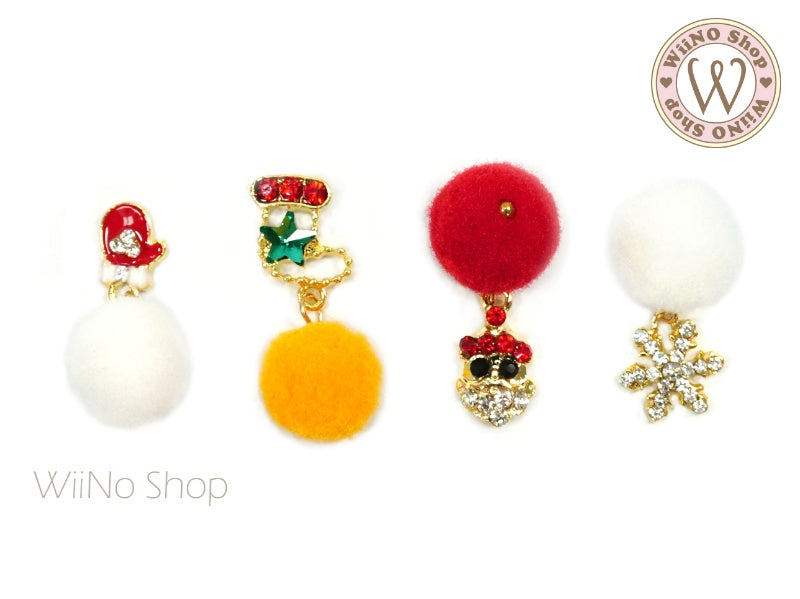 Christmas Pom Pom Nail Art Dangle Charm - 2 pcs