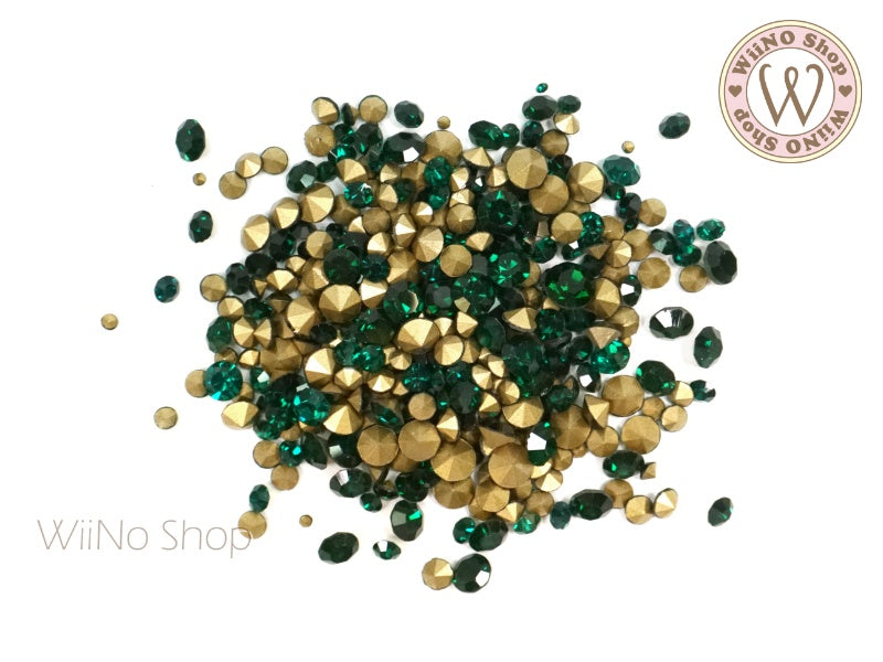 Dark Green Round Point Back Crystal Mix Size