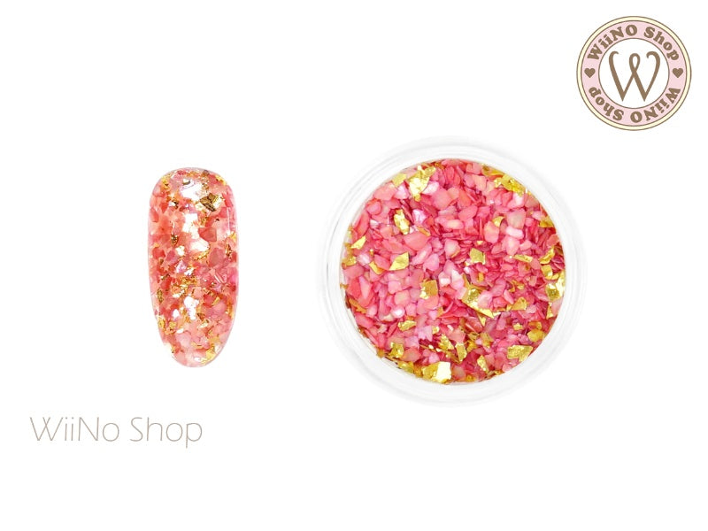 Light Rose Crushed Shell with Gold Foil Nail Art Decoration