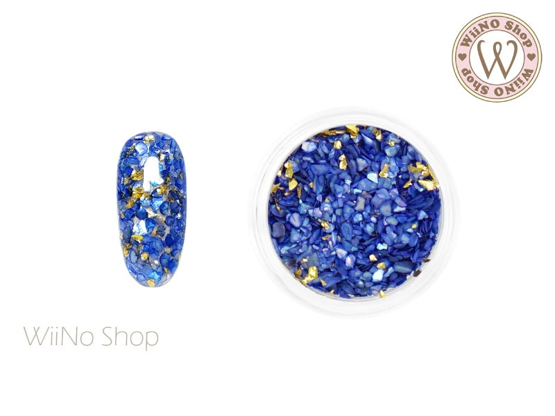 Royal Blue Crushed Shell with Gold Foil Nail Art Decoration