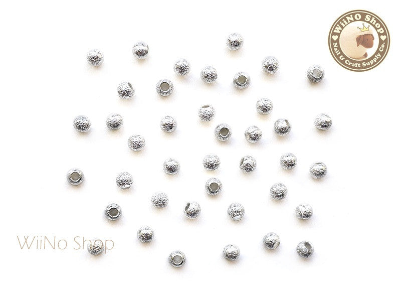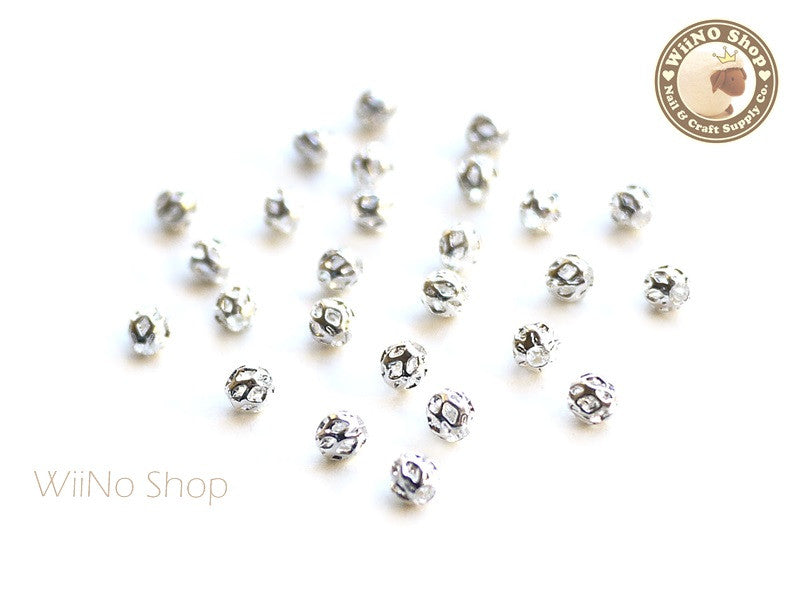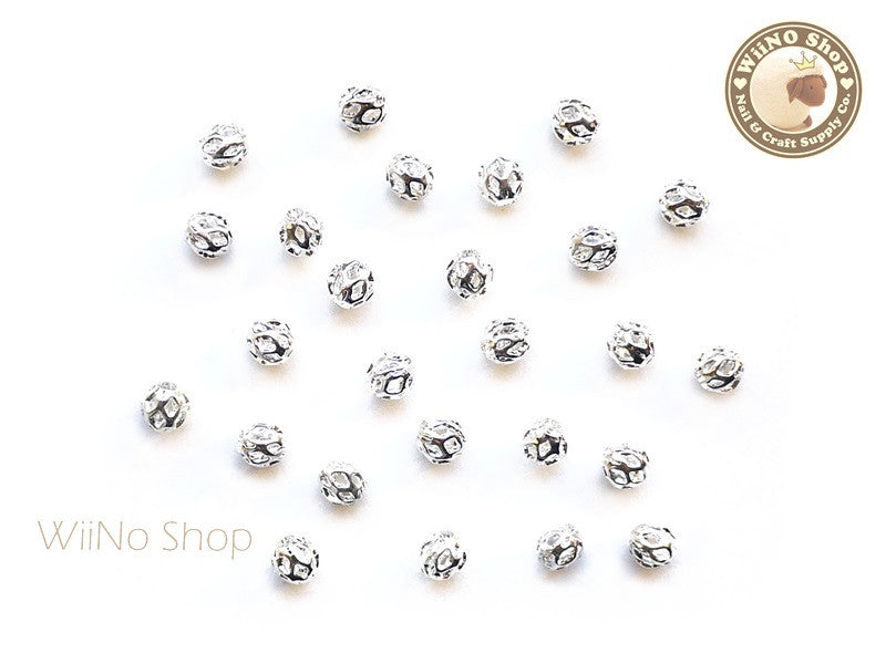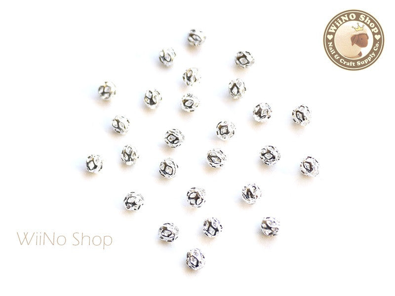 4mm Silver Hollow Round Beads Nail Art Decoration- 10 pcs