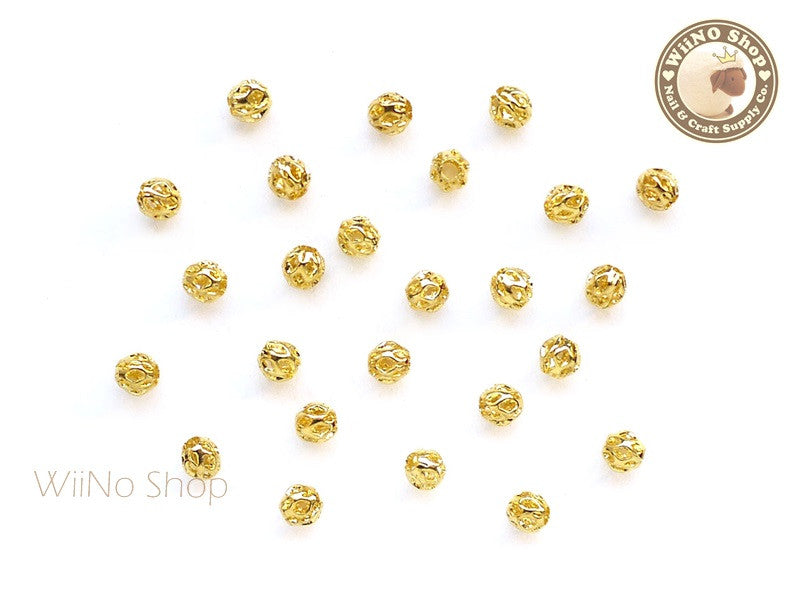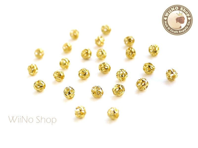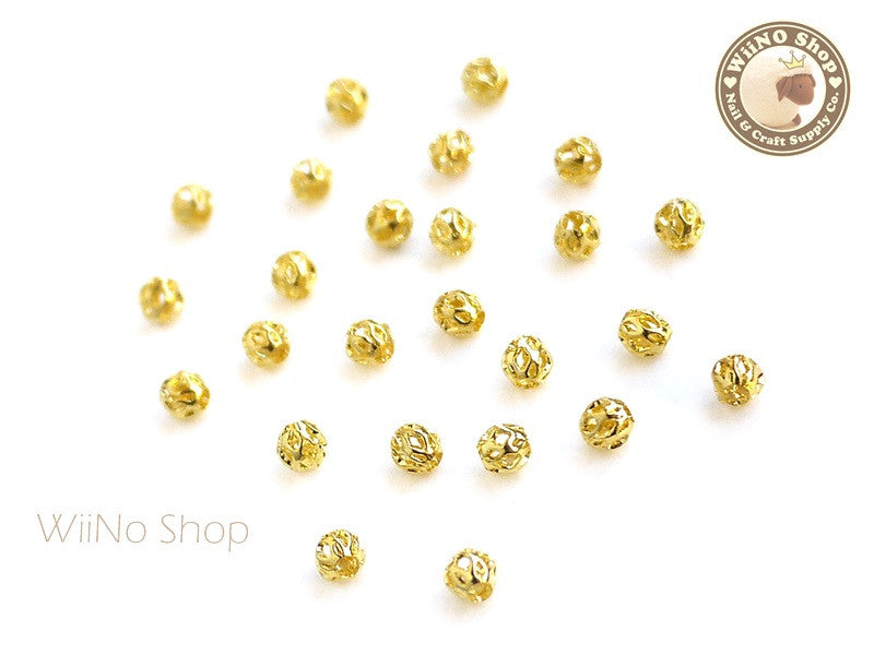 4mm Gold Hollow Round Beads Nail Art Decoration- 10 pcs