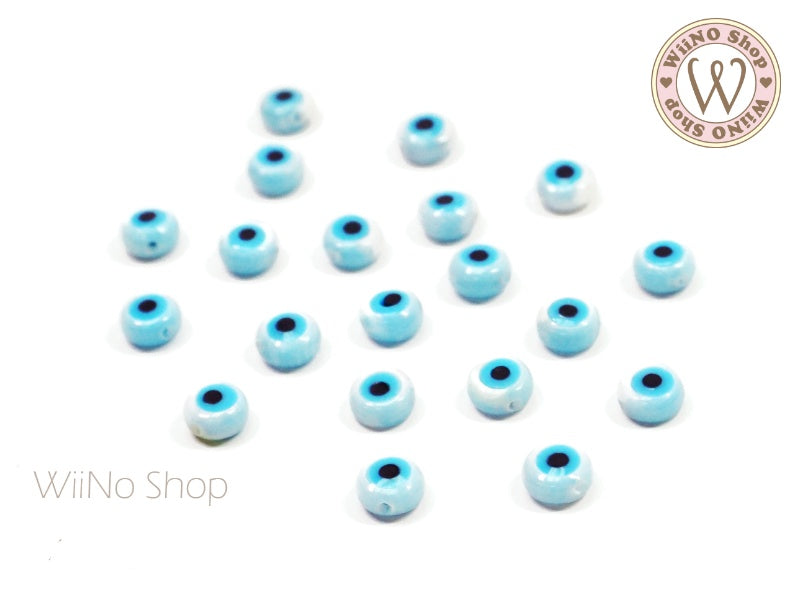 Round Evil Eye Shell Gemstone Beads - 5 pcs