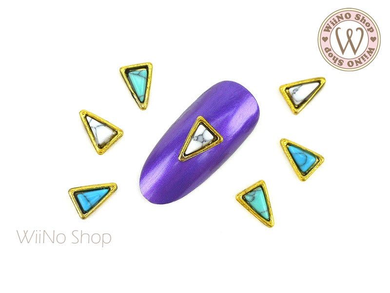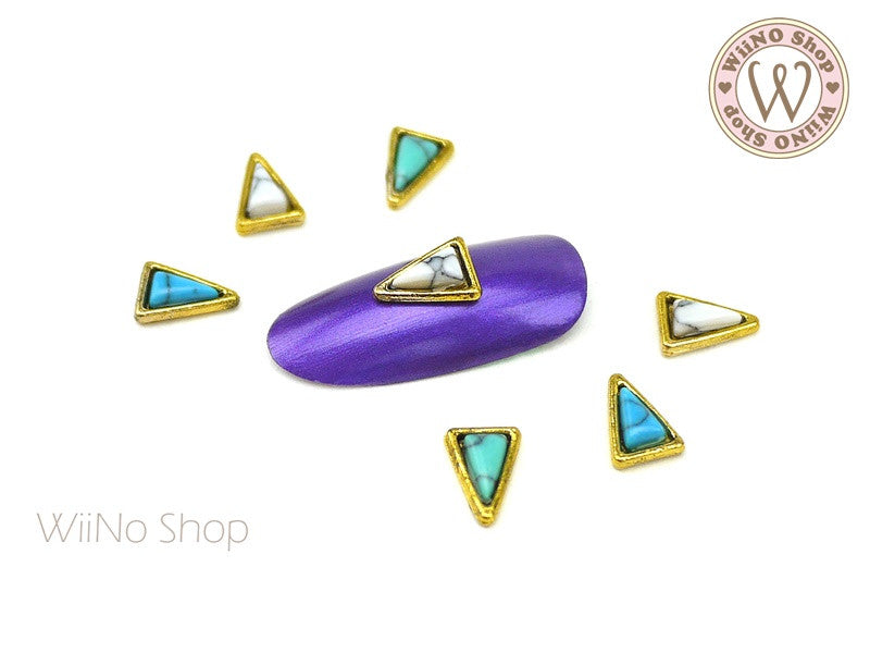 Long Triangle Turquoise Gemstone Nail Metal Charm - 2 pcs
