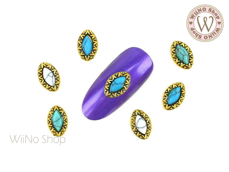 Marquise Turquoise Gemstone Bohemian Nail Metal Charm - 2 pcs