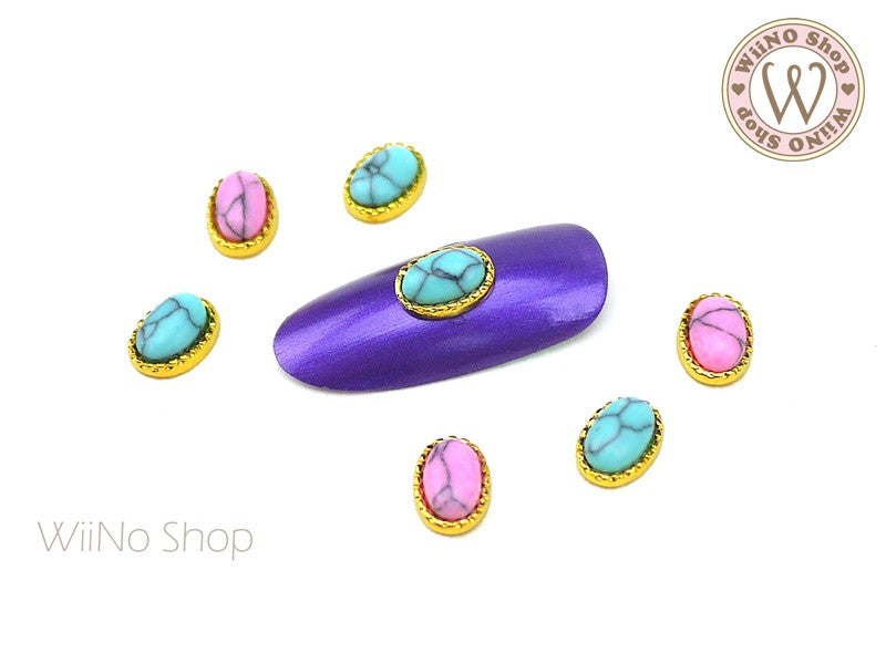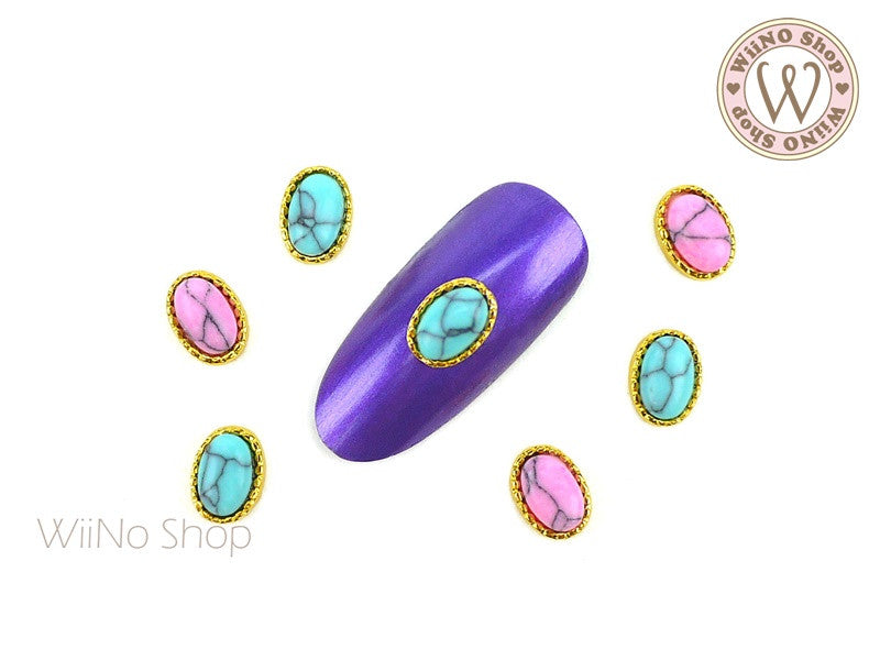 Oval Turquoise Gemstone Nail Metal Charm - 2 pcs