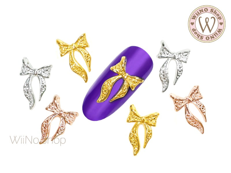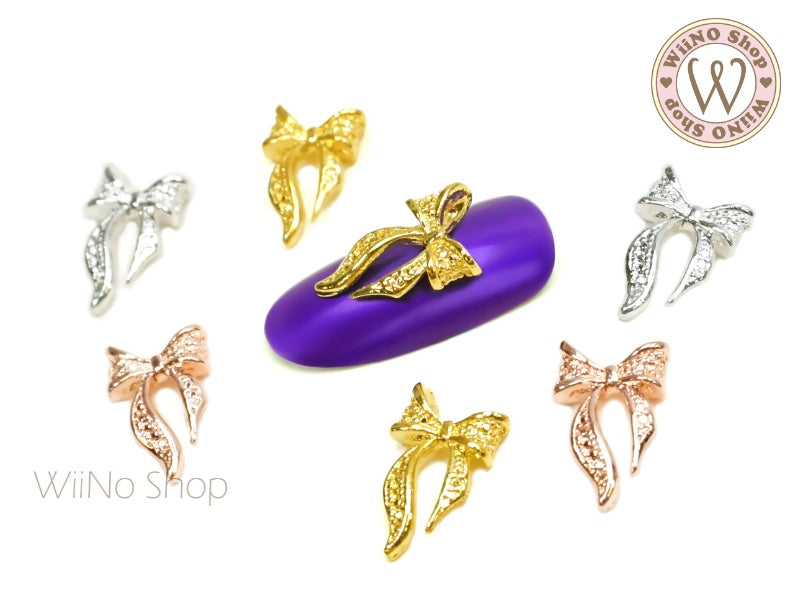 Ribbon Bow Nail Metal Charm - 2 pcs