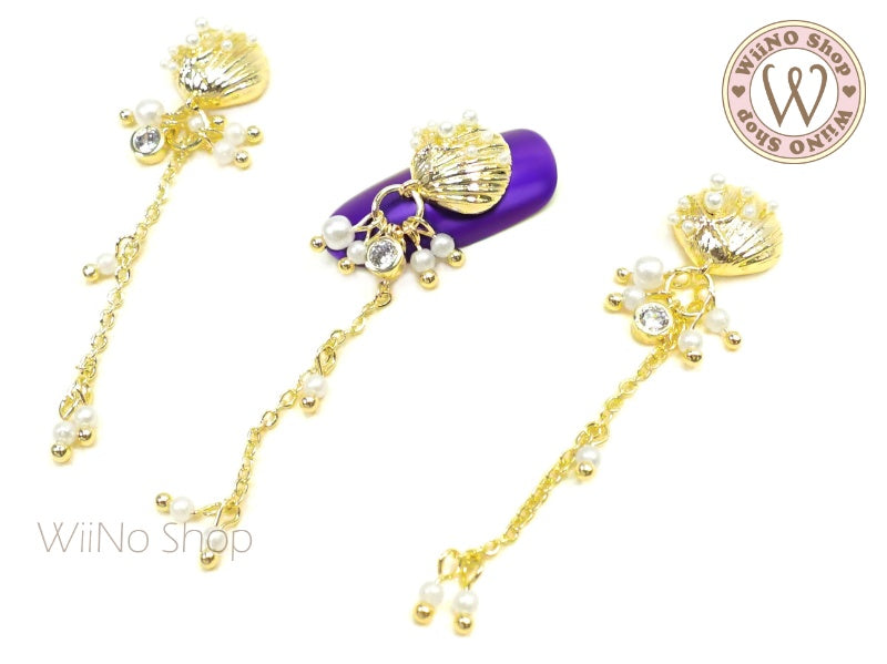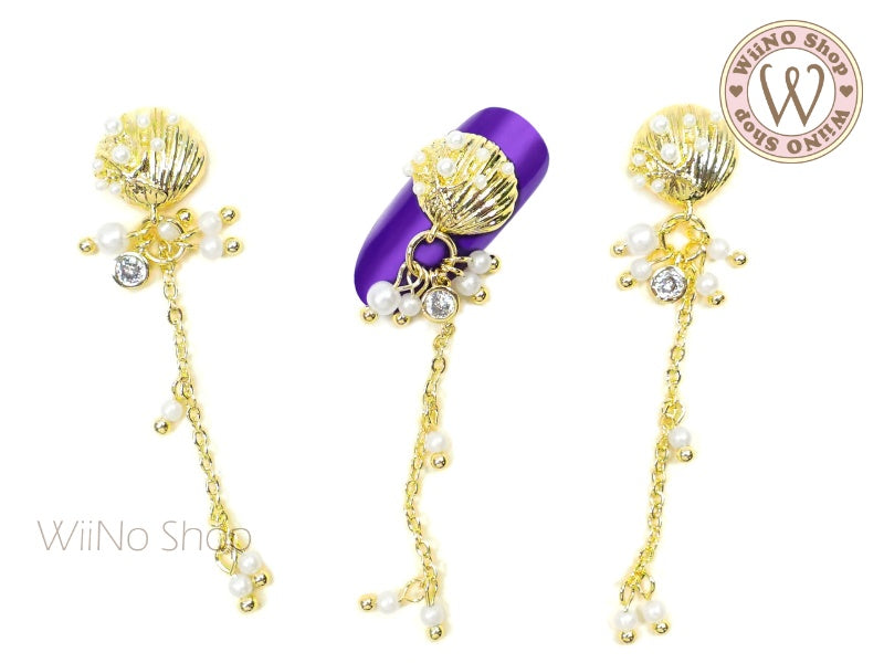 Pearl Seashell Nail Jewelry Charm with Chain - 1 pc