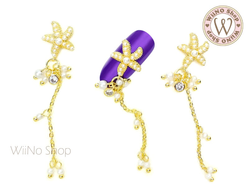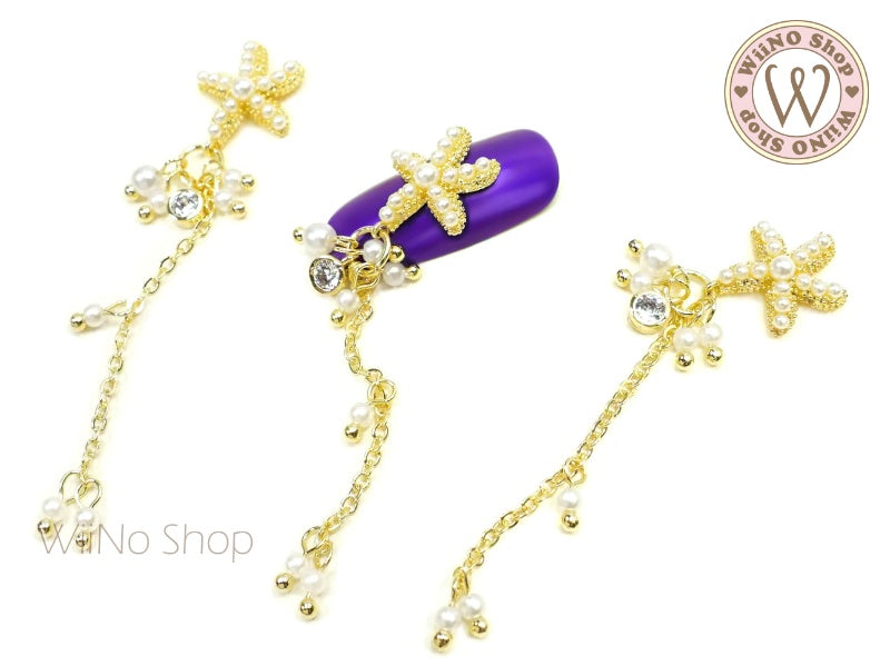 Pearl Starfish Nail Jewelry Charm with Chain - 1 pc