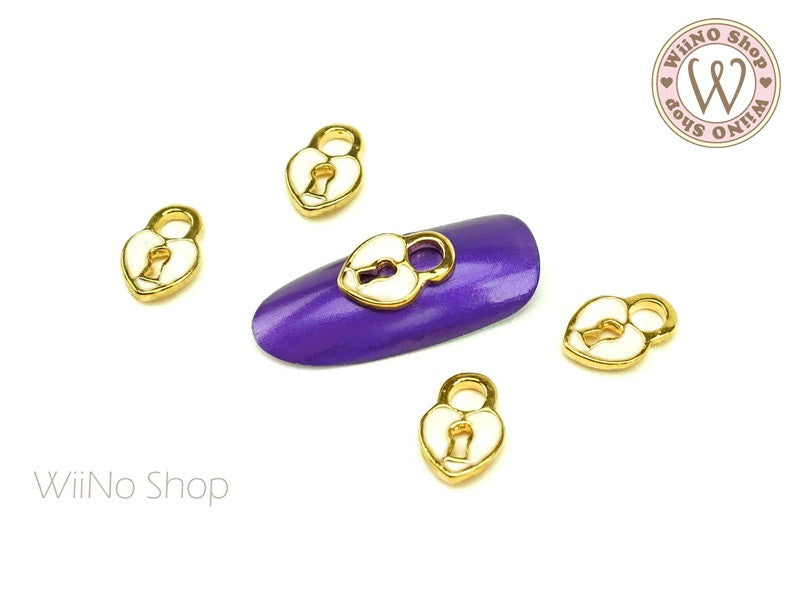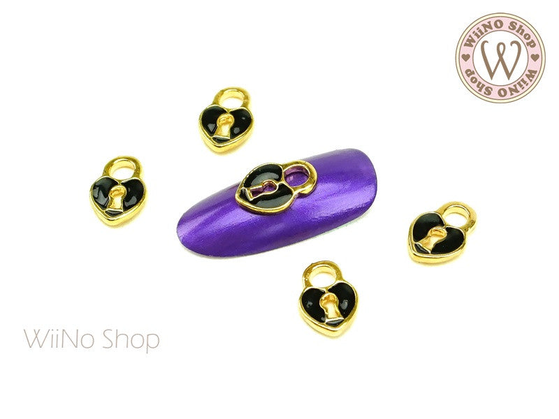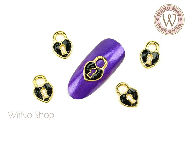Black Heart Lock Nail Metal Charm - 2 pcs