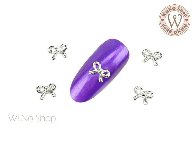 Silver Ribbon Bow Nail Metal Charm - 2 pcs