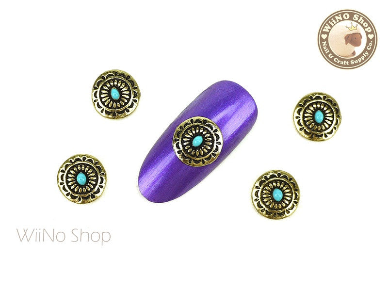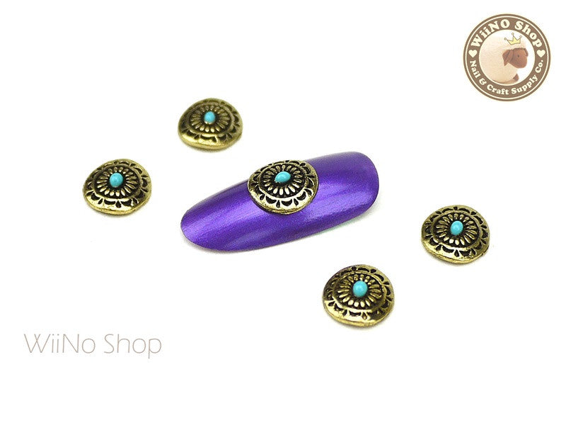 Vintage Gold Round Bohemian Nail Metal Charm - 2 pcs (BO01G)