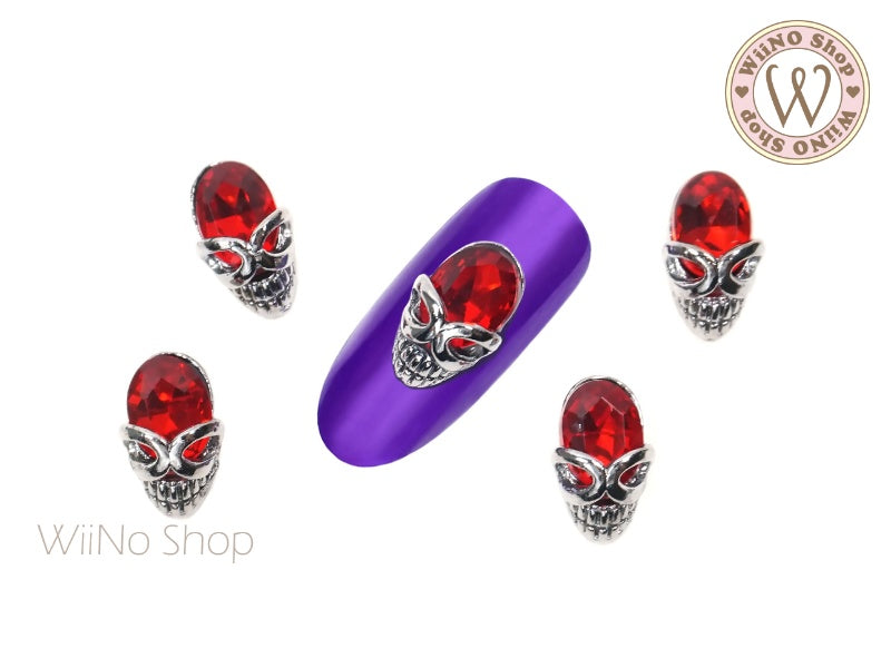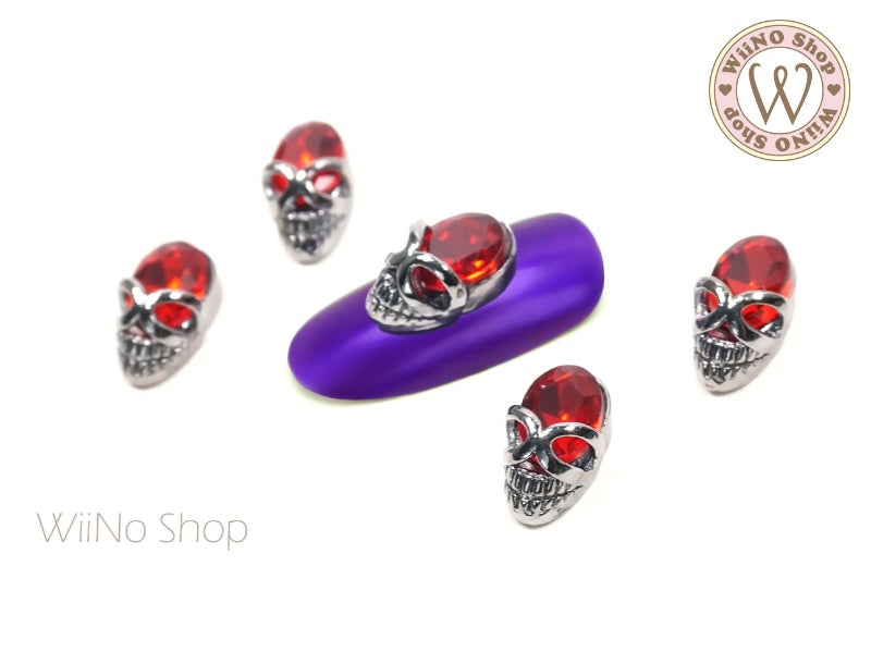 Red Crystal Skull Nail Metal Charm - 2 pcs
