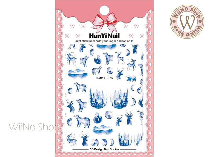 Blue Arctic Wildlife Adhesive Nail Art Sticker - 1 pc (HY-575)