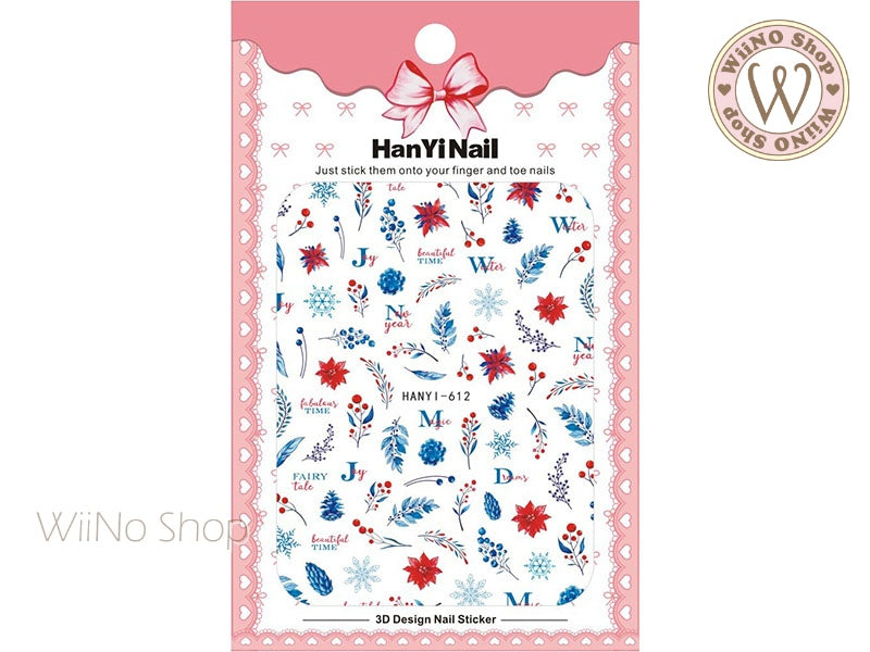 Winter Floral Pine Adhesive Nail Art Sticker - 1 pc (HY-612)