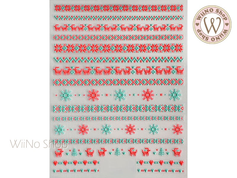 3D Red Green Reindeer Sweater Pattern Adhesive Nail Art Sticker - 1 pc (TS-270)