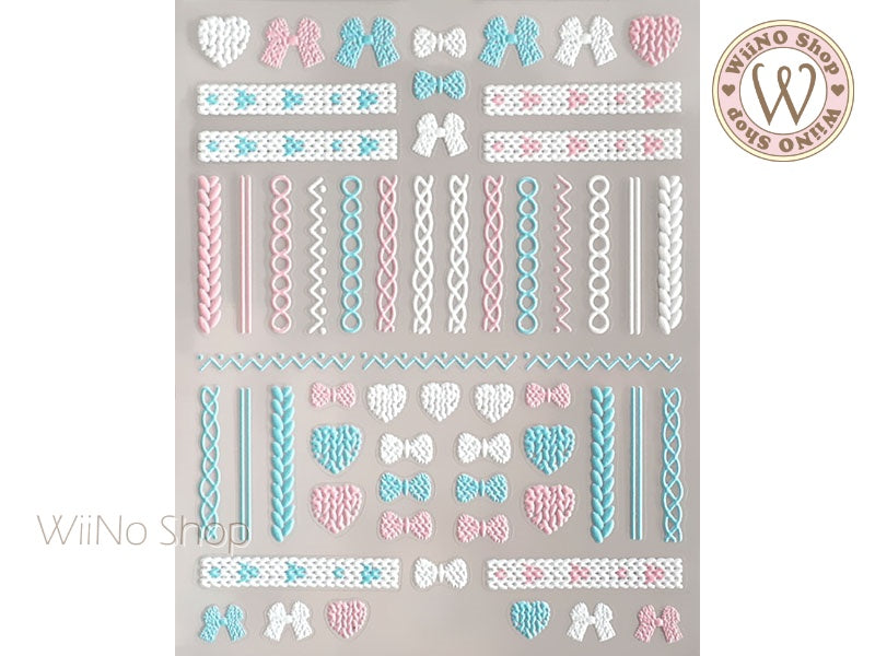 3D Pink Blue Sweater Pattern Adhesive Nail Art Sticker - 1 pc (TS-950)