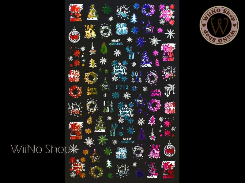 Santa Christmas Rainbow Chrome Adhesive Nail Art Sticker - 1 pc (F714-RW)