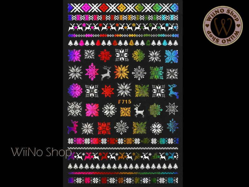 Reindeer Sweater Pattern Rainbow Chrome Adhesive Nail Art Sticker - 1 pc (F715-RW)