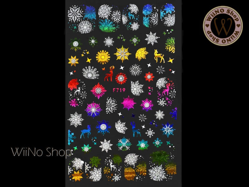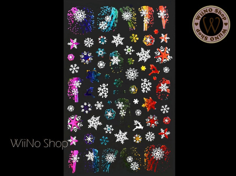 Reindeer Snowflake Rainbow Chrome Adhesive Nail Art Sticker - 1 pc (F719-RW)