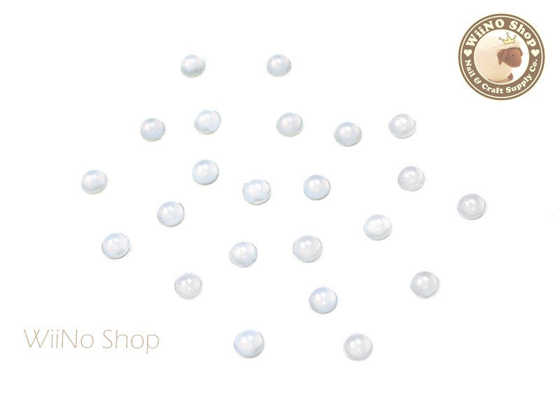 3mm White Opal Half Round Flat Back Acrylic Cabochon Nail Art - 15 pcs