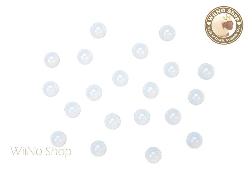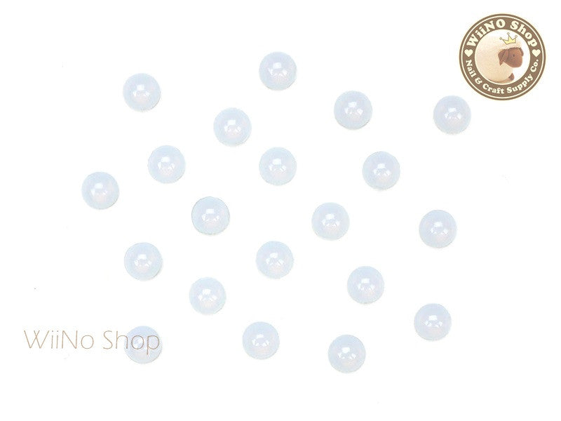4mm White Opal Half Round Flat Back Acrylic Cabochon Nail Art - 15 pcs