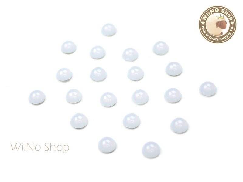 5mm White Opal Half Round Flat Back Acrylic Cabochon Nail Art - 15 pcs
