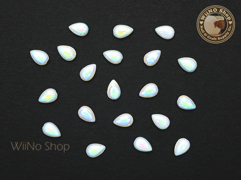 4 x 6mm AB White Drop Flat Back Acrylic Cabochon Nail Art - 15 pcs