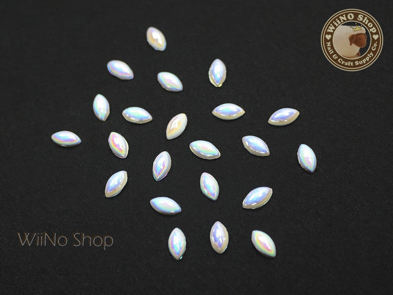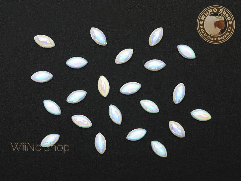 3 x 6mm AB White Marquise Flat Back Acrylic Cabochon Nail Art - 15 pcs