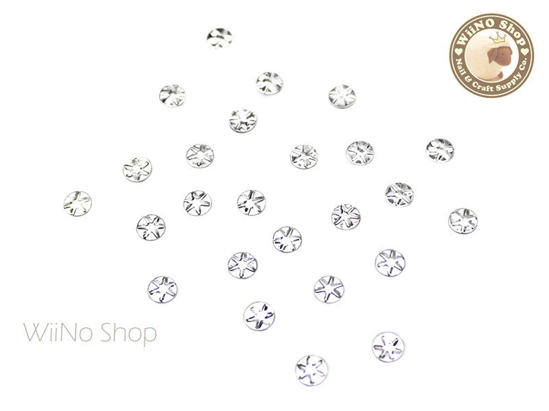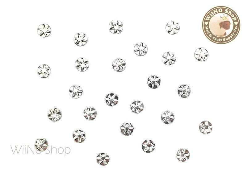 4mm Silver Star Pattern Round Metal Studs - 10 pcs
