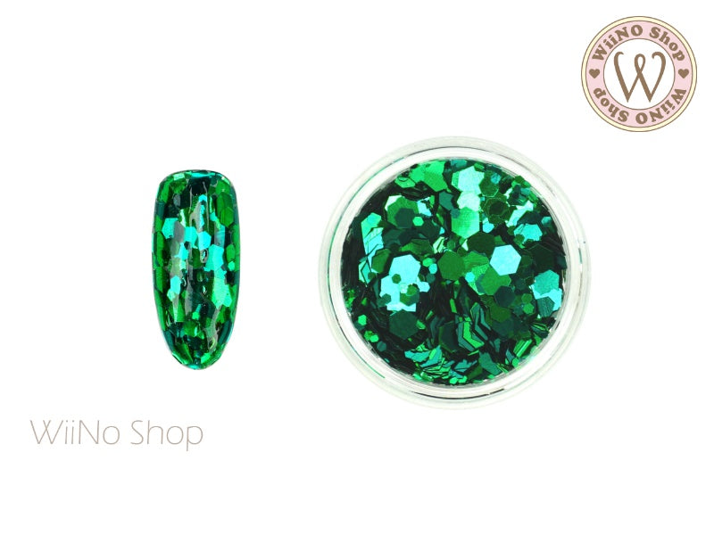 Green Hexagon Mix Sizes Glitter (TH07)