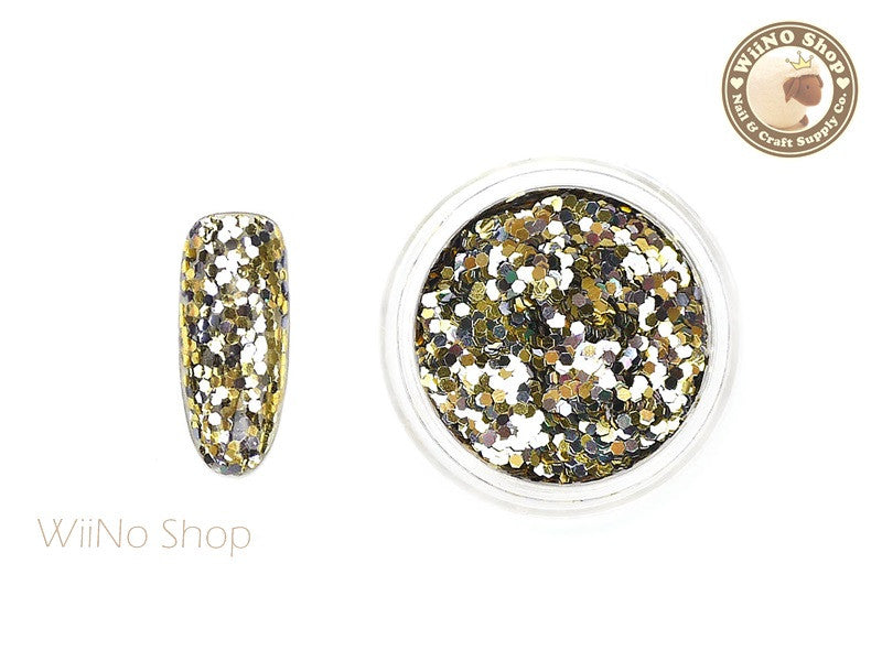 HB01 Gold White Hexagon Glitter