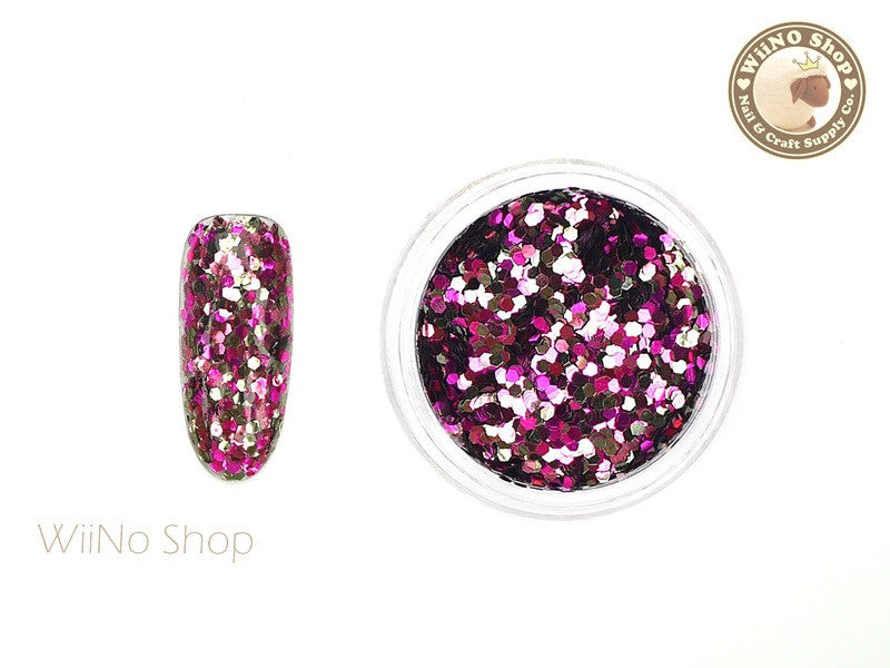 HB03 Fuchsia White Hexagon Glitter