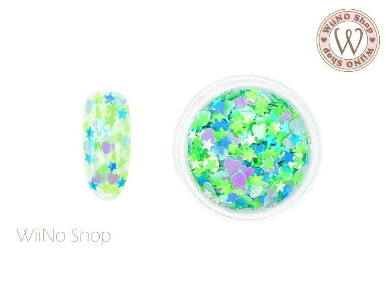 Green Heart Star Mix Glitter (MH03)