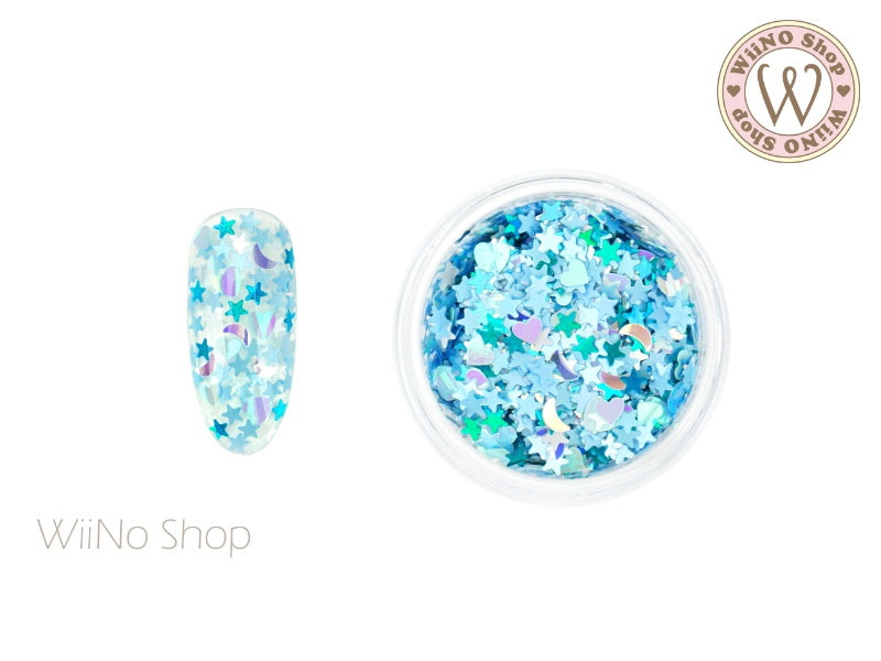 Blue Heart Star Moon Mix Glitter (MH04)