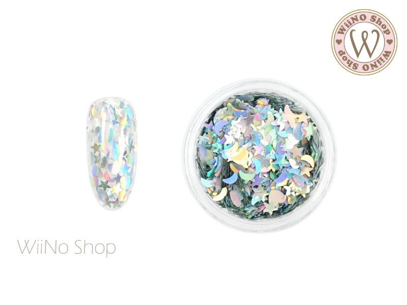 Silver Holographic Heart Star Moon Mix Glitter (MH06)