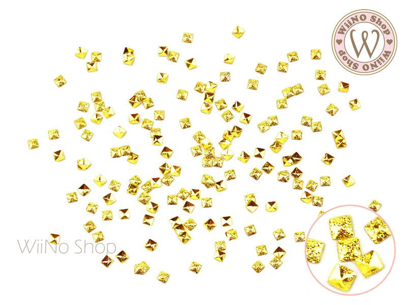 2mm Gold Textured Square Metal Studs - 25 pcs