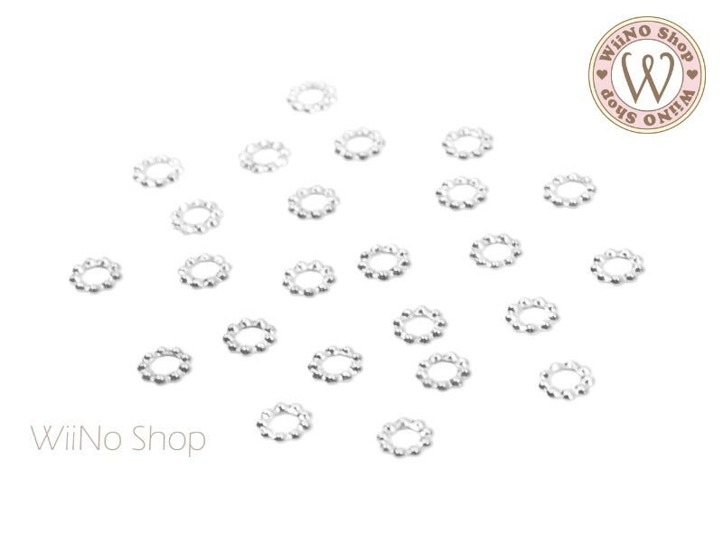 4mm Silver Round Circle Dotted Frame Metal Studs - 10 pcs