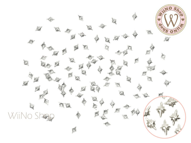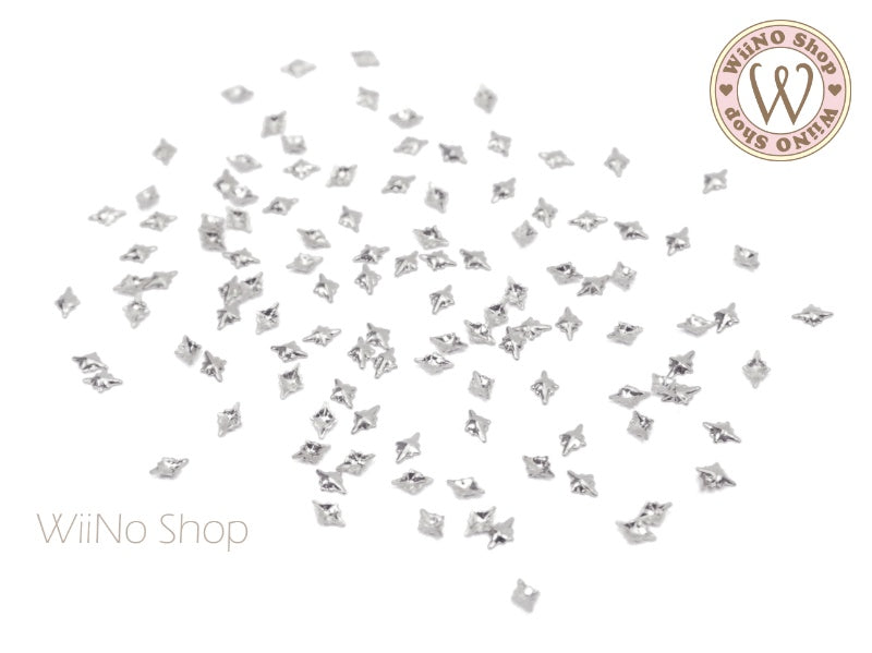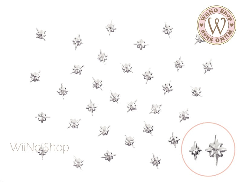 Silver Mini Shine Star Metal Studs - 10 pcs (2x3/3.5x5mm)