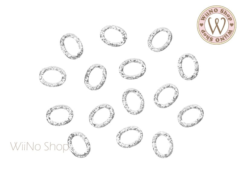 Silver Oval Textured Frame Metal Studs - 10 pcs