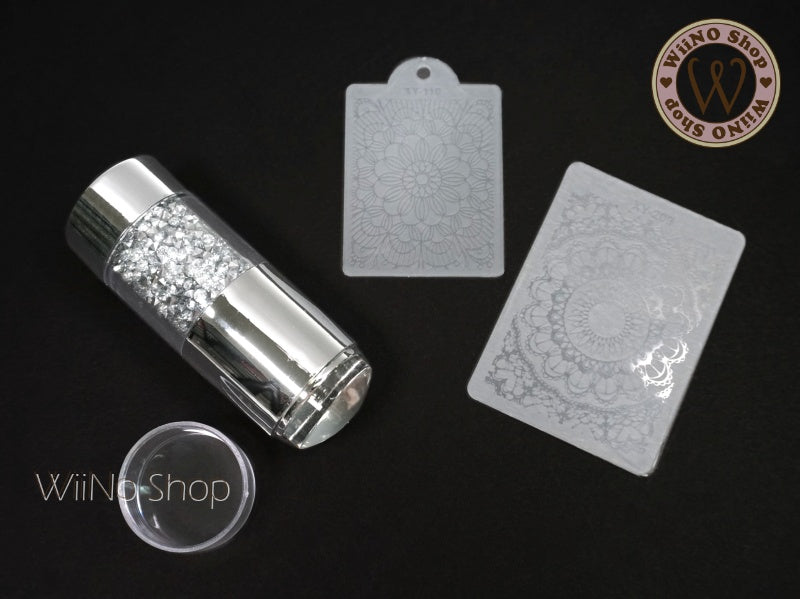 Silver Rhinestone Nail Art Stamper & Scraper - 1 set